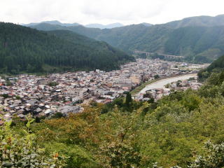 郡上八幡城からの景色(入口売店付近) お城へは結構急な坂道があります。